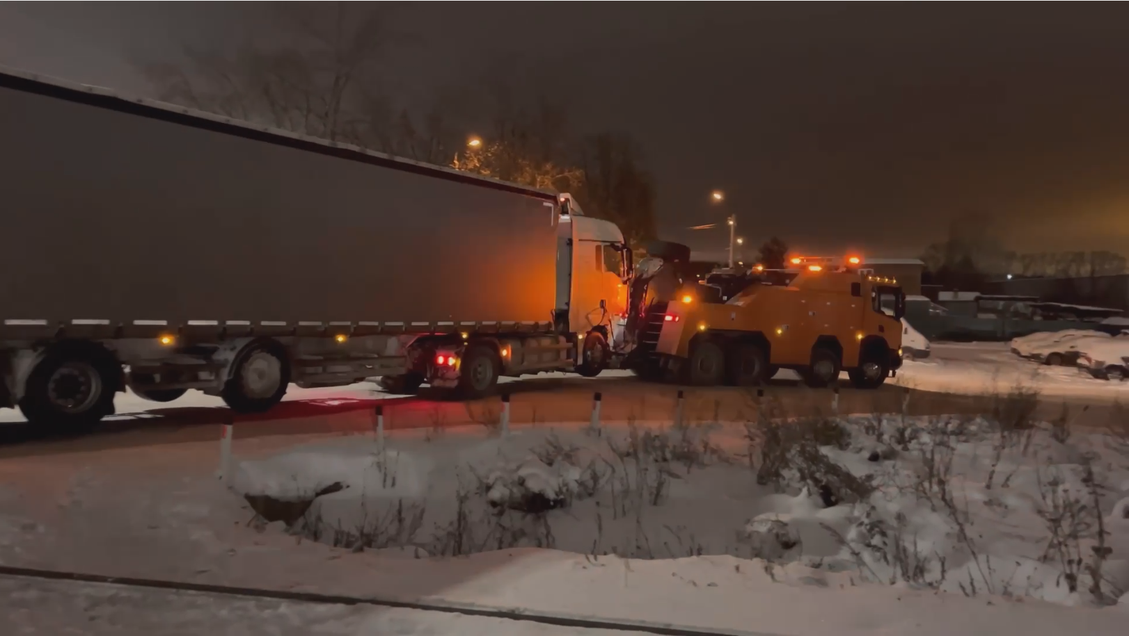 Вытаскиваем тягачи и полуприцепы из кювета, грязи и снега. Оцениваем ситуацию на месте и выбираем безопасный способ